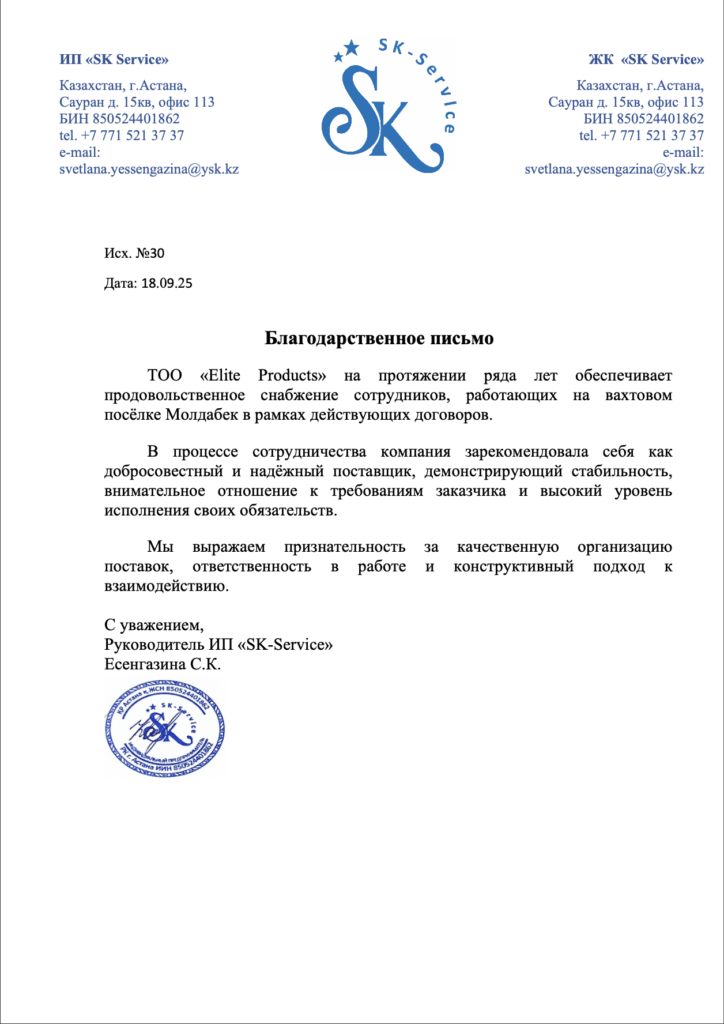 ТОО «Elite Products» обеспечивает полный цикл — от склада до полки: охват всех каналов продаж, собственная логистика, торговые команды и цифровая прозрачность для производителей.